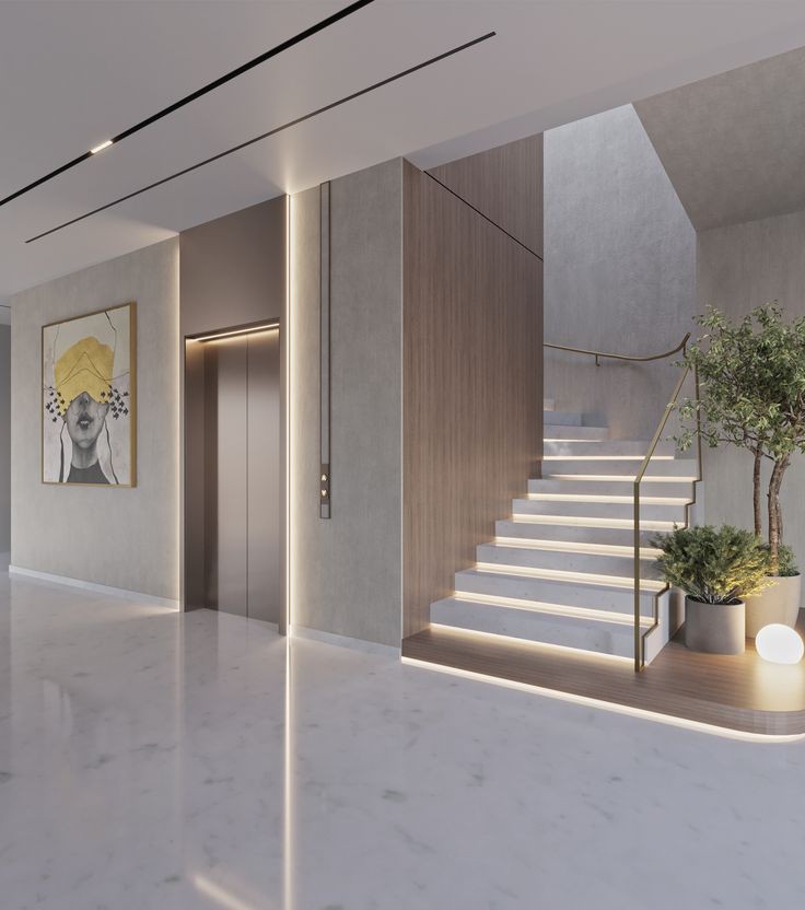 سواء كانت إضاءة مخفية تحت الدرابزين أو إضاءة جانبية تبرز تفاصيل الدرج، فإن هذه الإضاءة تضيف لمسة من الفخامة والحداثة.