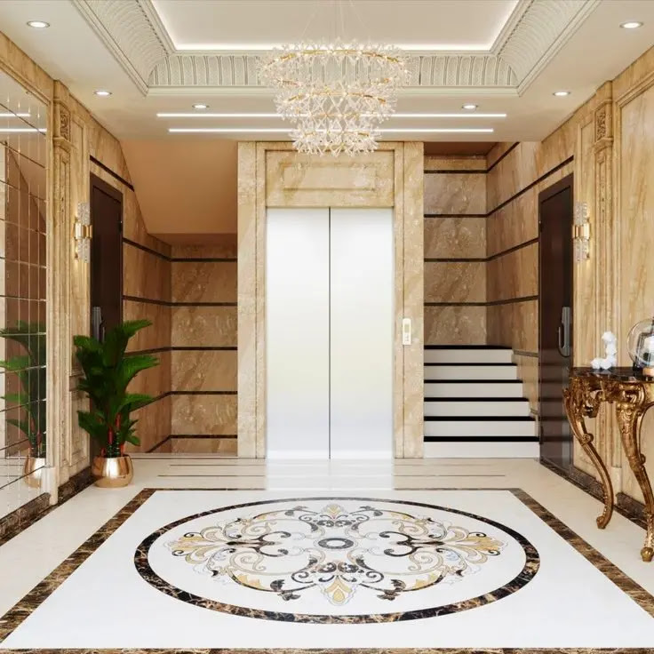 تشتمل الألوان مثل البيج، الكريمي، والبرونزي التي تمنح المدخل إحساساً بالدفء والترحاب.